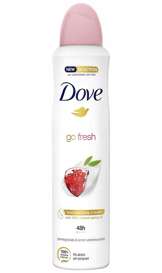 Niezwykle skuteczny antyperspirant Dove Go Fresh o odświeżającym zapachu granatu i werbeny cytrynowej. Jego formuła została wzbogacona o jeszcze większą ilość olejków pielęgnujących oraz substancje przedłużające trwałość działania kosmetyku