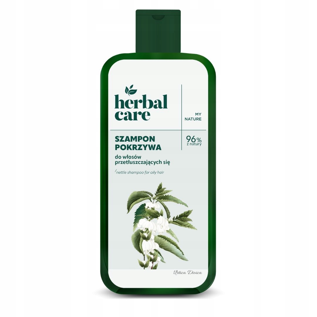 Szampon do włosów Pokrzywa 330 ml Szampon do włosów przetłuszczających się z pokrzywą stworzony w oparciu o naturalne ekstrakty i ich niezwykłe właściwości. Odkryj naturalną pielęgnację z Herbal Care. Ekstrakt z pokrzywy i cynk PCA wpływa na regulację wydzielania sebum, zapobiegając przetłuszczaniu się włosów i skóry głowy. Hydrolizat protein pszenicy wzmacnia pasma włosów i przywraca im zdrowy wygląd. Vital Soft Formula zapewnia włosom miękkość, sprężystość i blask pielęgnuje włosy i ułatwia ich rozczesywanie. Szampon sprawi, że Twoje włosy staną się: zdecydowanie mniej podatne na przetłuszczanie odżywione, mocne i łatwe w stylizacji podniesione u nasady i lśniące. Sposób użycia: Nałóż na mokre włosy, delikatnie wmasuj i spłucz wodą. W razie konieczności powtórz mycie. Ekstrakty ziołowe mogą powodować wytrącanie się osadu i zmętnienie. Przed użyciem wstrząśnij. Składniki/Ingredients:Aqua (Water), Sodium Laureth Sulfate, Glycerin, Cocamidopropyl Betaine, Caprylyl/Capryl Glucoside, Sodium Chloride, Urtica Dioica (Nettle) Leaf Extract, Hydrolyzed Wheat Protein, Zinc PCA, Inulin, Urea, Arctium Lappa (Burdock) Root Extract, Hydroxypropyl Guar Hydroxypropyltrimonium Chloride, Cetrimonium Chloride, Starch Hydroxypropyltrimonium Chloride, Lactic Acid, Sodium Lactate, Citric Acid, Disodium EDTA, Sodium Benzoate, Potassium Sorbate, Parfum (Fragrance). Testowany dermatologicznie Sposób użycia: Szampon delikatnie wmasuj w mokre włosy i skórę głowy. Spłucz wodą a następnie zastosuj odpowiednią odżywkę do włosów Herbal Care. W razie konieczności powtórz mycie. Składniki aktywne: Ekstrakt z pokrzywy reguluje aktywność gruczołów łojowych i zmniejsza wydzielanie sebum, zapobiegając przetłuszczaniu. Białka pszeniczne regenerują i wzmacniają włosy, przywracając im piękny, zdrowy wygląd.