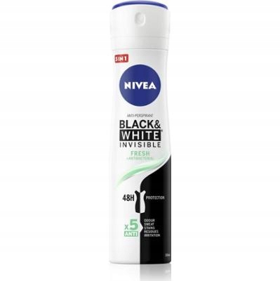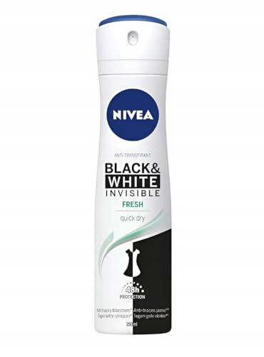 Antyperspirant w aerozolu Nivea Invisible Fresh for Black&White to produkt opracowany we współpracy z ekspertami z dziedziny tekstyliów, by zapewnić Ci mocną i niezawodną ochronę przed poceniem się, bez ryzyka pobrudzenia ubrań. Antyperspirant ma nowy, orzeźwiający zapach i nie pozostawia żółtych plam na czarnych ubraniach ani białych śladów na czarnych koszulkach. Czarne bluzki i sukienki pozostają czarne, a białe – białe, bez przebarwień i smug.