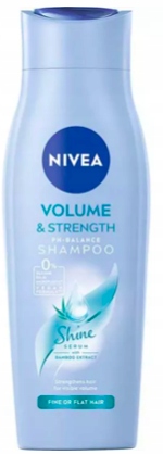 NIVEA Volume & Strength to delikatny szampon pielęgnujący z ekstraktem z bambusa, którego ulepszona formuła dostosowuje się do naturalnego poziomu pH skóry głowy.