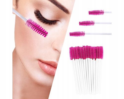 ⭐ Biało-różowe szczoteczki do rzęs i brwi – 50 sztuk