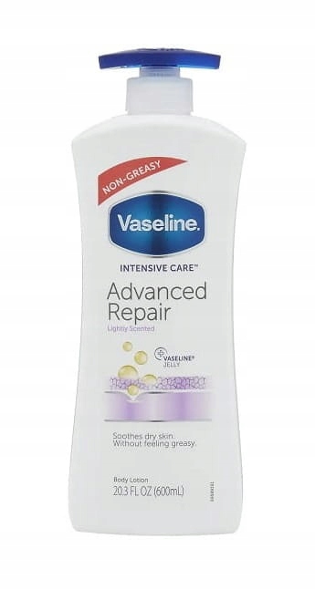 Vaseline Intensive Care Advanced Repair Body Lotion 600 ml to zaawansowany balsam do ciała, który skutecznie łagodzi i naprawia suchą, podrażnioną skórę. Formuła wzbogacona o mikrocząsteczki wazeliny zapewnia intensywne nawilżenie, które przenika głęboko w warstwy skóry, przywracając jej naturalną barierę ochronną. Lekko perfumowany i nietłusty, balsam szybko się wchłania, nie pozostawiając lepkiej warstwy, co sprawia, że skóra jest miękka i gładka w dotyku. Idealny do codziennego stosowania, szczególnie w okresach zwiększonej suchości skóry.